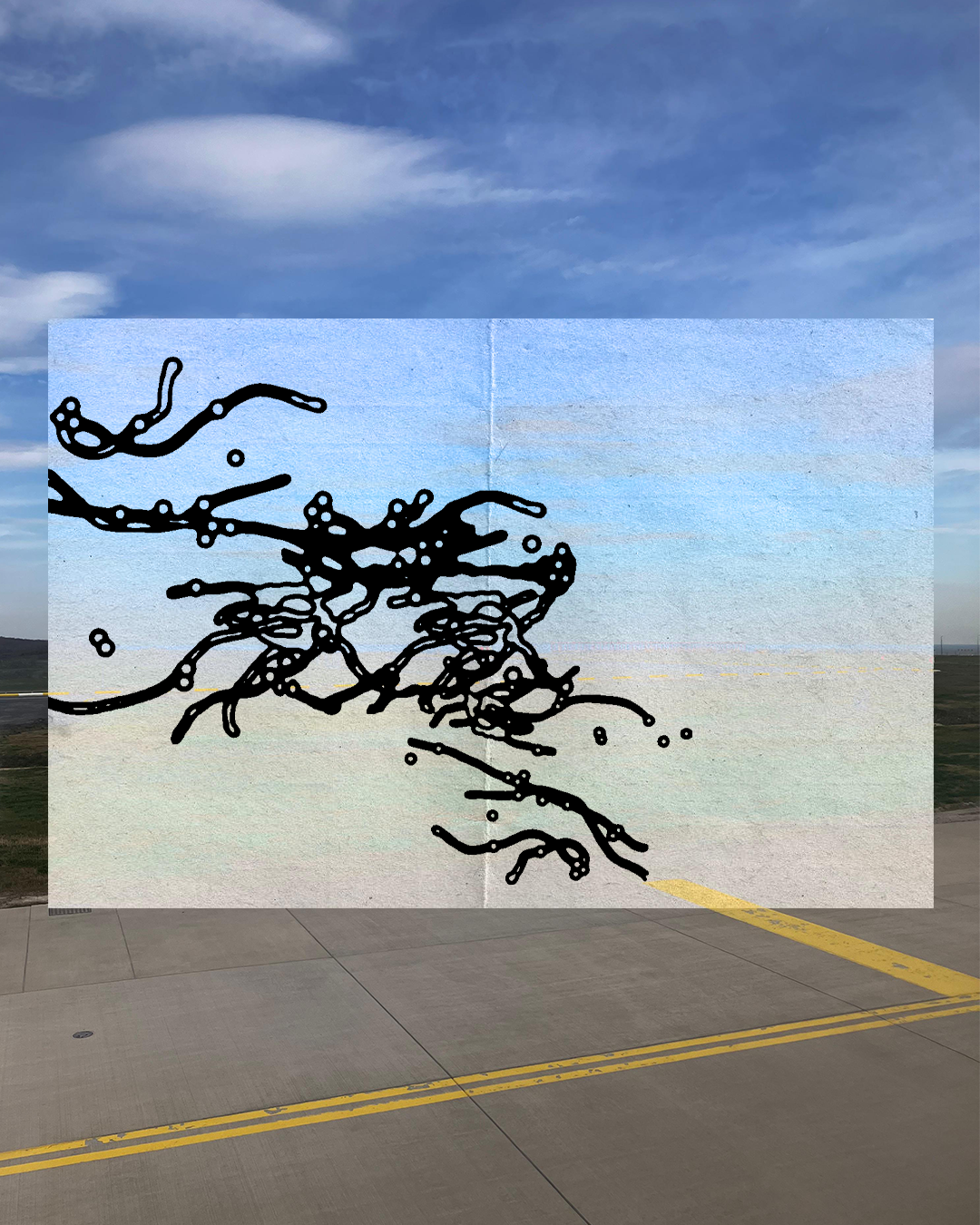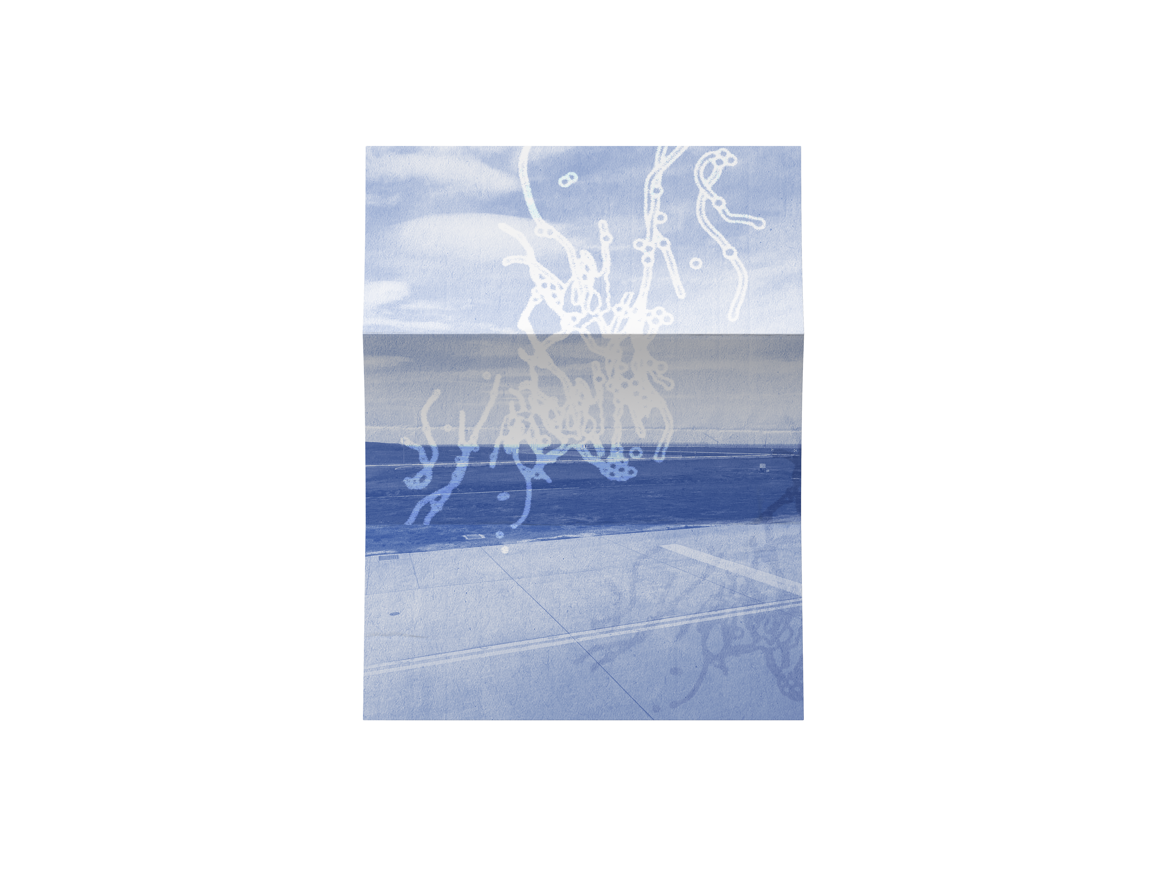 Cyantoype digital stylization experiment with my eye floater shapes.
